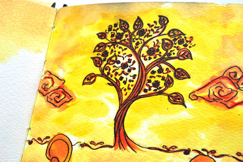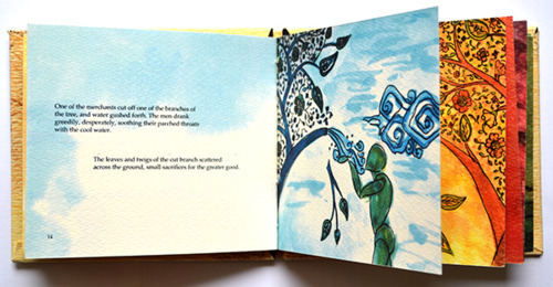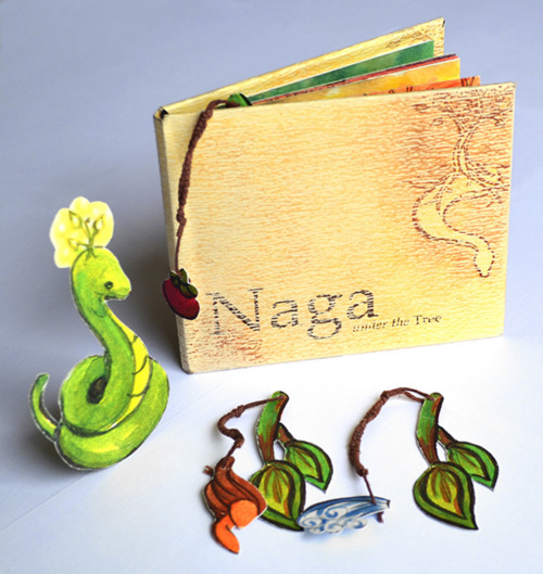 A picture book that retells a Buddhist jataka about a group of travellers who were saved by a sacred tree, but were eventually destroyed because of their greed. The project includes a poster, the book and other collateral such as bookmarks, a mascot design etc.